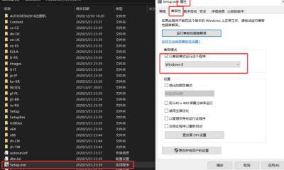 如果安装不成功,需要进行兼容性设置。【setup】右键——属性——兼容性。