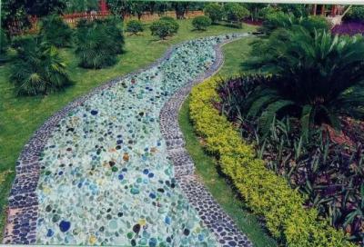 施工前,要根据设计的图样,准备镶嵌地面用的砖石材料,设计有精细图形的,先要在细密质地青砖上放好大样,再精心雕刻,作好雕刻花砖,施工中嵌入铺地图案中。要精心挑选铺地用石子,挑选出的石子应按照不同颜色、不同大小、不同长扁形状分别堆放,铺地拼花时才能方便使用。施工时,先要在已作好的道路基层上,铺砌一层结合材料,厚度一般可为4cm~7cm之间,根据设计要求采用干法铺筑湿法铺筑。在铺平的松软垫层上,按照预定的图样开始镶嵌拼花,或者拼成不同颜色的色块,以填充图形大面。就可以定形。定形后的铺地地面,仍要用水泥干砂或石灰砂撒布其上,并扫入砖石缝隙中填实。最后,用大水冲击或者使路面有水流淌。完成后,养护7~10d。
